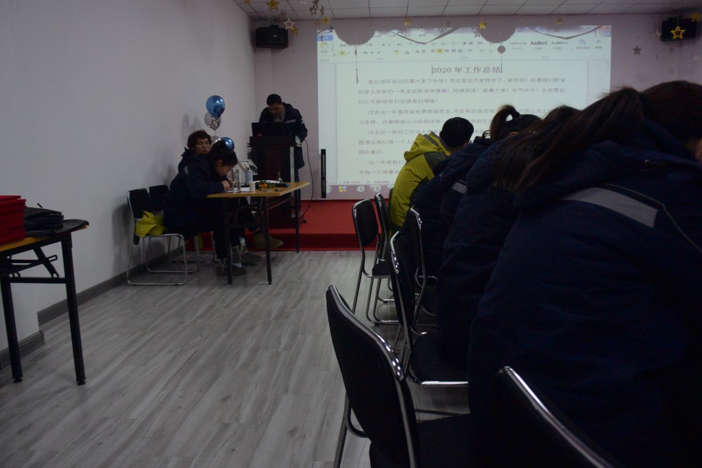 会议首先由总经理周杰做了公司年度工作总结报告,并对2021年公司的发展做了整体的规划。之后听取了公司各部门2020年度的工作汇报。对2020年度表现突出的优秀人员进行表彰。优秀员工:余海成、孙磊、陈威、祖春银、李进进、李月芹、张其宁、杜乃鹏、王铁成、陈天来;年终考核优秀人员:陈威、陈晓亭、赵守保、王铁成、李进进、李月芹、王化芹、周洁;任命孙磊、王铁成、张怀军为检测室副主任,进步之星孙瑶瑶。