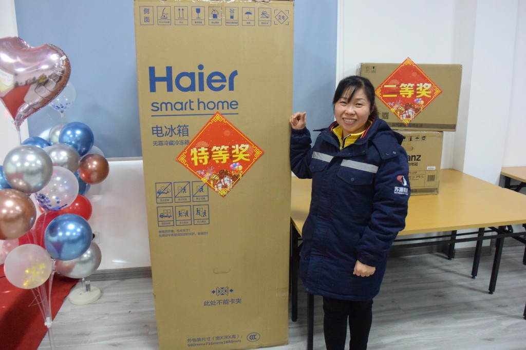 其次,进行文艺汇演及抽奖环节,各部门人员表演了丰富多彩的文艺节目,年终抽奖依然是大会的高潮,最终特等奖花落内检室王化芹手中。