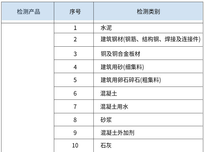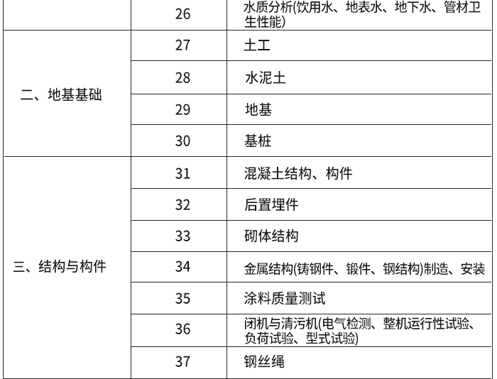 可检测建筑材料、地基基础、结构与构件、工程测量与量测、道路与桥梁、水利机械电气、信息(计算机)网络七项五十大类共计545个参数,检测范围涉及水利、市政、交通、信息等行业。